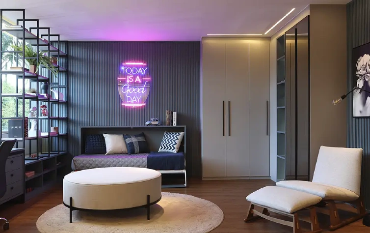 Mais do que decorar, as cores contam histórias. Uma sala em tons terrosos remete à natureza e ao conforto do lar. Um escritório em cinza e preto inspira foco e sofisticação. E um closet em bege e branco transmite leveza e equilíbrio, perfeito para começar o dia com tranquilidade.